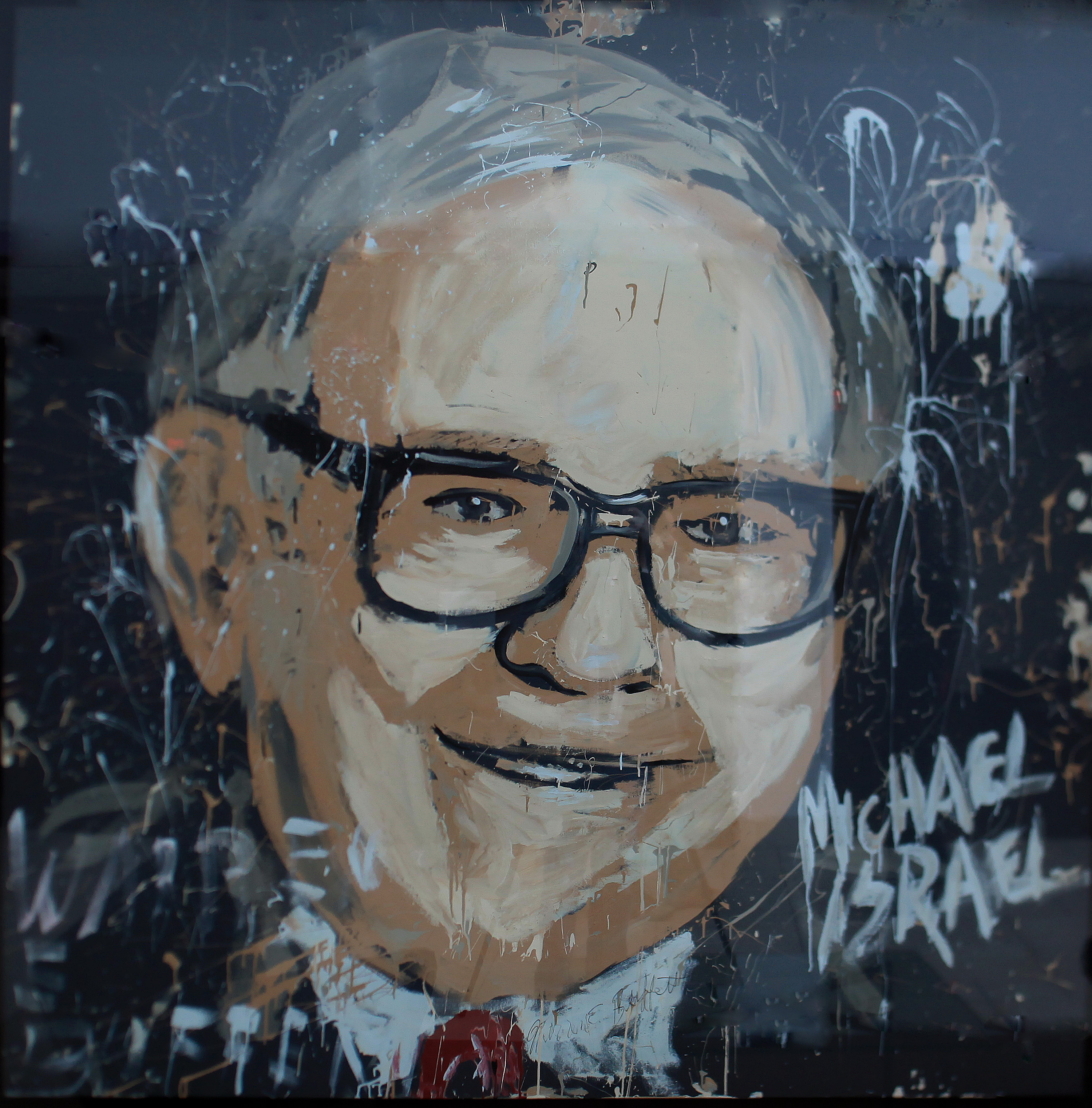 The painting included above was done by Michael Israel at the start of the 2008 Berkshire Hathaway shareholders meeting. Click here to watch the video of Israel beginning and completing the painting in 10 minutes and 32 seconds. The piece was then auctioned to raise money for the non-profit organization Girls Inc. The winning bidder, UNO alumnus John Morgan, donated the painting to our college and it can be viewed in the main atrium of Mammel Hall.