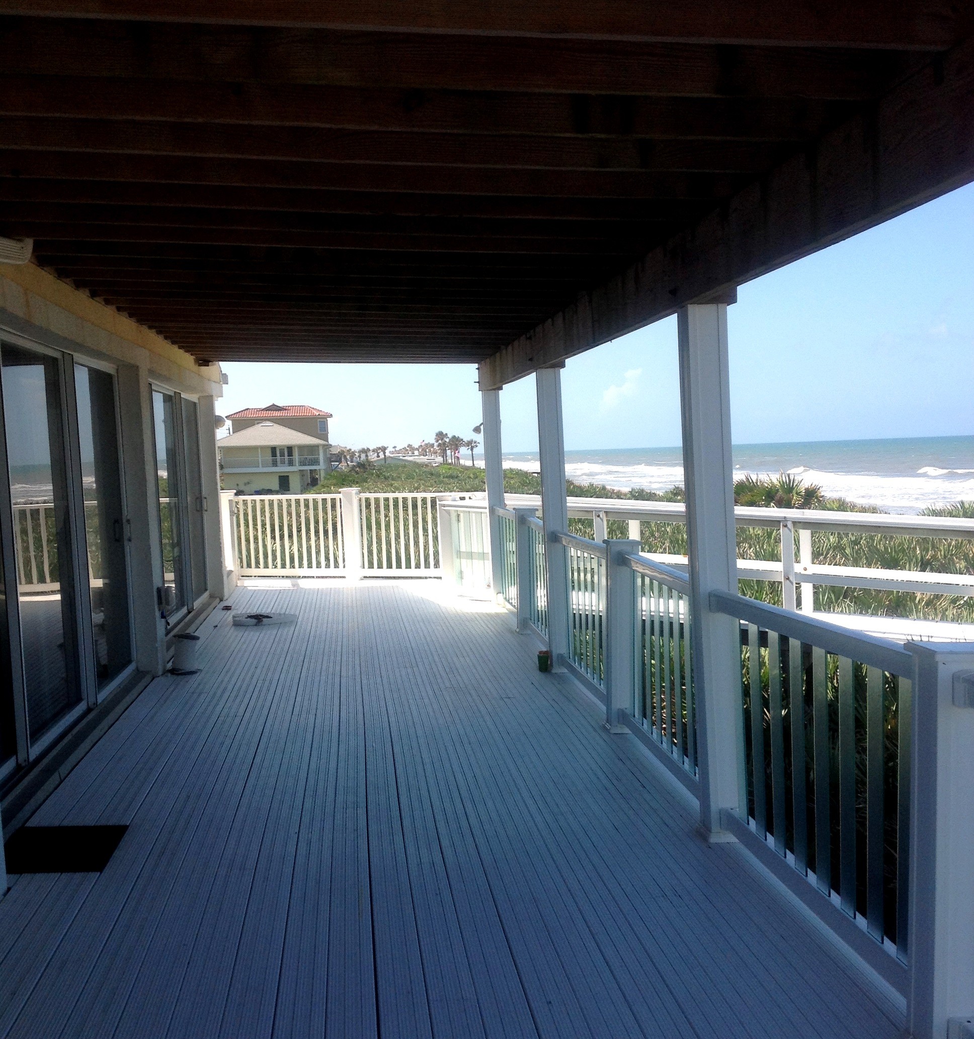 We arrived at our very good friend Gary’s this afternoon and right away he asked us simple question, “Do you want to spend a couple of days at the beach?” It took a nanosecond to reply yes, and here we are with open sliding glass door listening to the waves, reading, and relaxing (of course with my friend Mr. Modelo). The house we are staying at belongs to one of Gary’s friends who is also a colleague. You can see from the pictures that this is a fine place on a fairly isolated part of Flagler Beach, nestled between the sea oats, palms, and very colorful wild flowers. Two days here won’t be enough, but it is a fine start to our time at the beach.