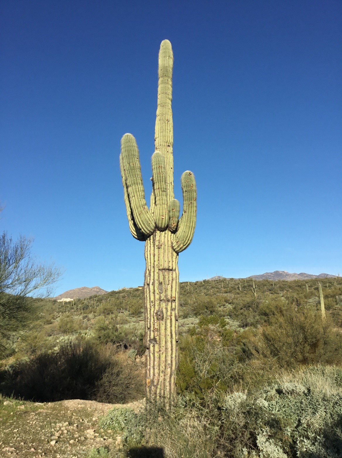 At 3,000 feet, the Saguaro Cacti, leave the scene, no longer around to give tourists and residents the one finger salute. The pines begin to take over at around 4,000 feet, and become an even greater part of the landscape as the altitude increases.