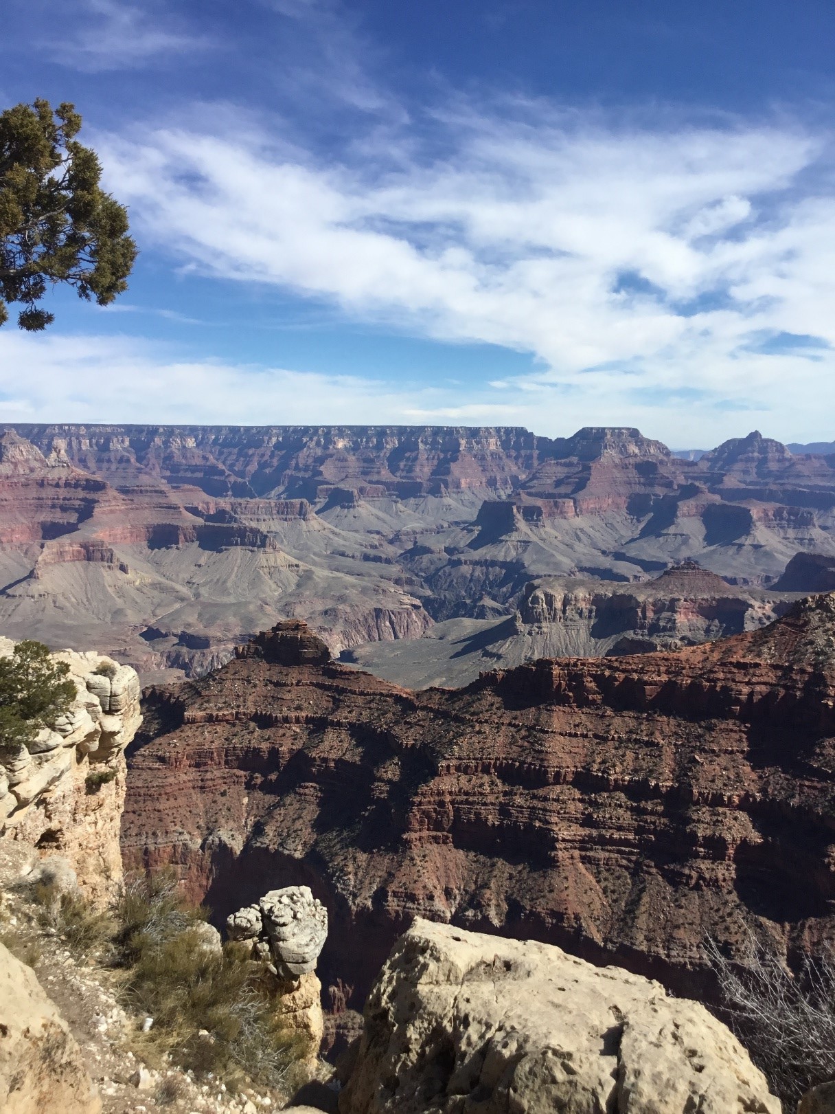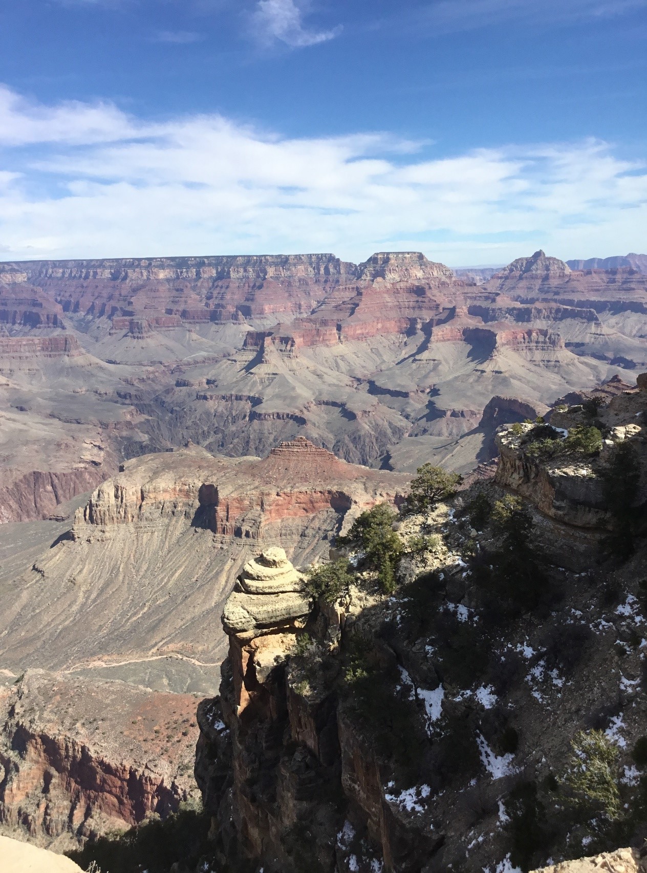 All of us have seen pictures of the canyon. It’s even better in person. And, it is certainly the largest ‘wonder’ place on the planet, 227 miles long, 18 miles wide at its widest, and more than one-mile deep, 6,093 feet, at its deepest. The south rim access area is a one hour fifteen minute drive west and north of Flagstaff. We avoided the late spring/summer deluge of humans by visiting in mid-February. The temperature was reasonable, high in the low fifties, and clouds/fog did not obscure our vision. Recent studies show that the Grand Canyon may be as much as 70 million years old, although there is another group of scientists who support the “young canyon” theory, six million years old. Either way it’s old. Those folks at the creationist museum and at the Ark Encounter contend that the canyon is a leftover of the big flood; therefore, it is less than 6,000 years old. While that Noah guy sure could build a boat, I am going with the scientists on this one.