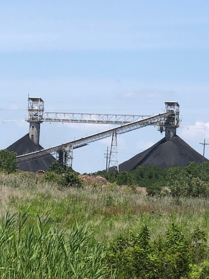 A short drive from Sullivan lies the Bear Run surface mine operated by Peabody Energy. Bear Run is the largest surface coal mine east of the Mississippi River. Its massive drag line system weighs 13 million pounds, more than 150 Boeing 737-700 jetliners. The crane is 220 feet high and has an operating radius of 335 feet. The bucket at the end of the boom car can carry a 335,000-pound payload. The system of conveyors to move the coal and the oversized trucks that carry topsoil to cover the damage done are unearthly. I’ll write about the environmental impact of these operations at a later time. For now, read John Grisham’s Gray Mountain.