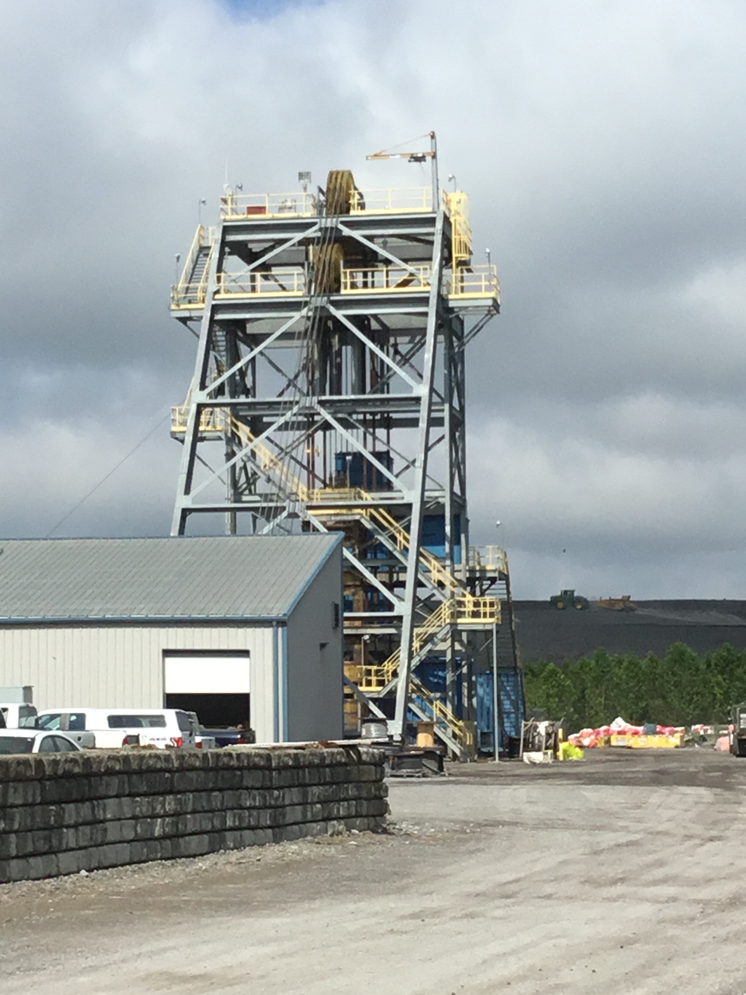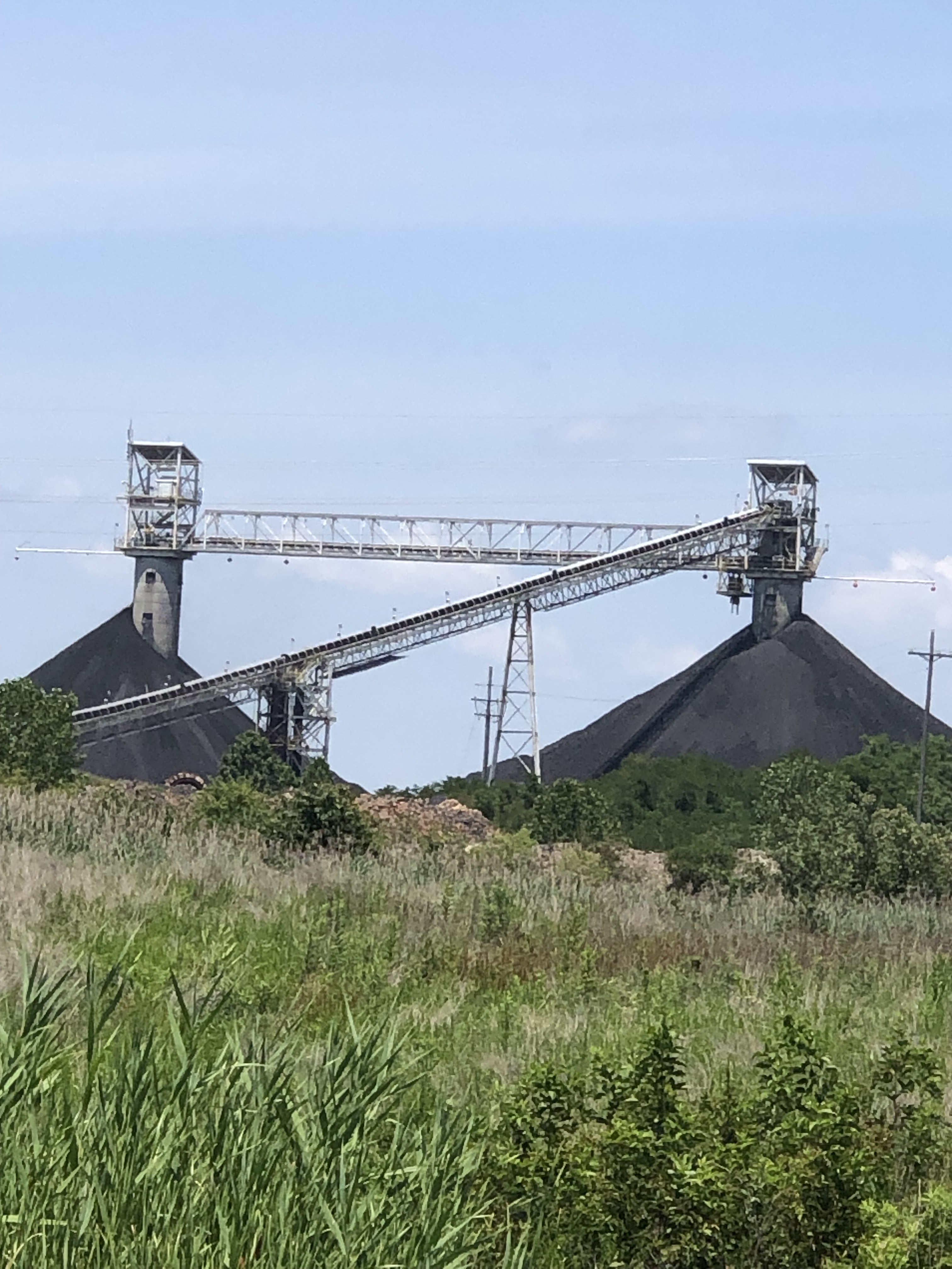 While the coal mines in which my grandfather worked have long since closed, coal is still a big thing in Sullivan and Ziegler. Outside Ziegler near the town of Aiken is the Sugar Camp mine. The main shaft is down 900 feet, 500 feet lower than Ziegler Number 1 mine in which my grandfather worked. Each day hundreds take the long ride down to the world of little light in order to remove coal from thick seams and load it up to be shipped to the surface. Once above the ground, the coal is sent via a massive conveyor system for grading and eventually to the train cars that will carry it to the last destination.