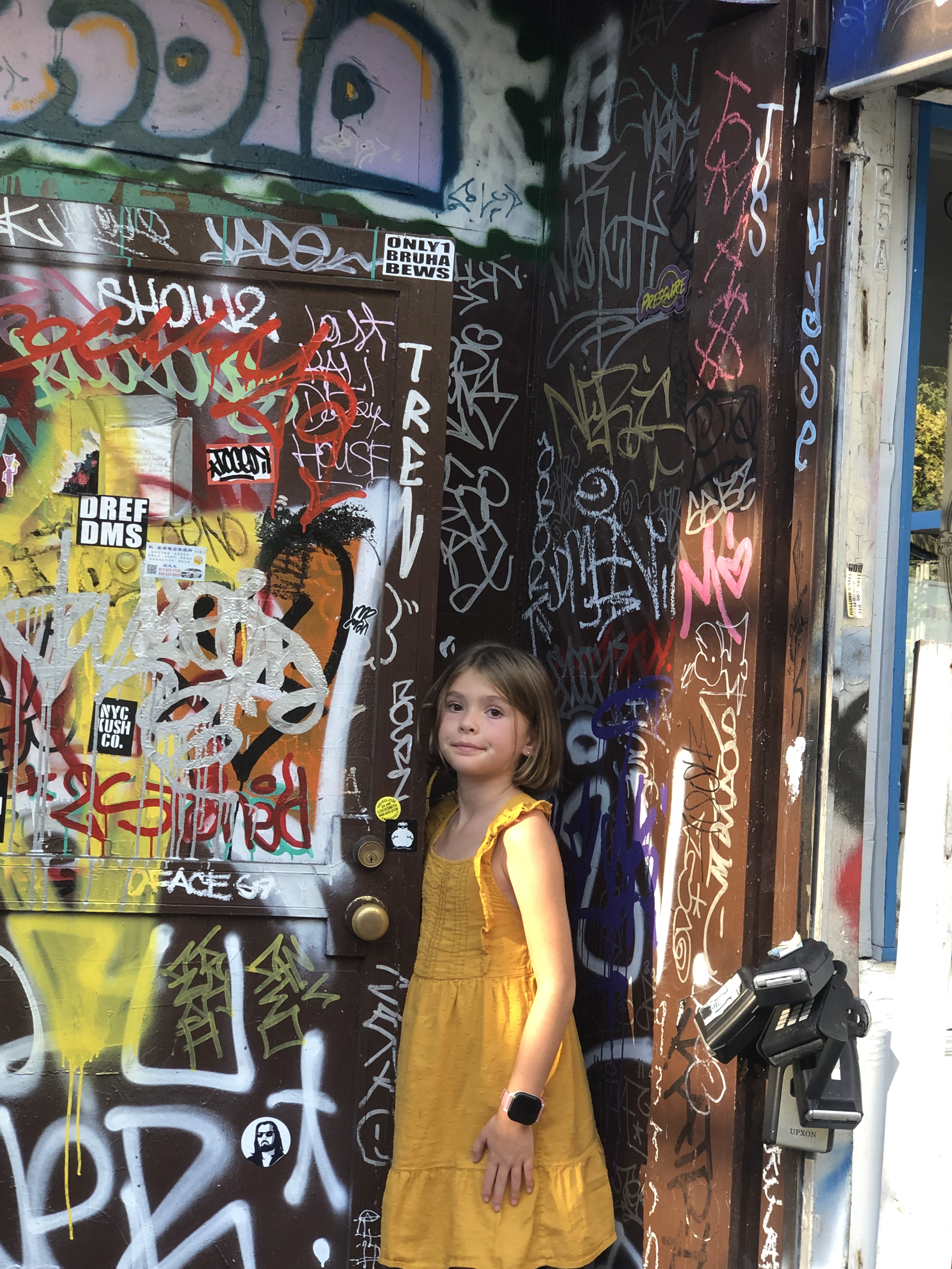 The LES is a special place for me. It was the first residential stop for my great grandparents, my mother’s family, after immigrating from Sicily. The LES has changed markedly in the last several decades. Little Italy has shrunk and Chinatown has expanded to also include a large and growing Vietnamese population. Bodegas, small shops, food trucks, and nifty restaurants are found on almost every block with apartments and condos on the second floor and higher. Subway stops are everywhere. Our Airbnb was across the street from Seward Park. No Bocce, but ping pong, plus a high-energy crowd, especially on Friday and Saturday night. That’s my granddaughter Maren at the front door of our place.