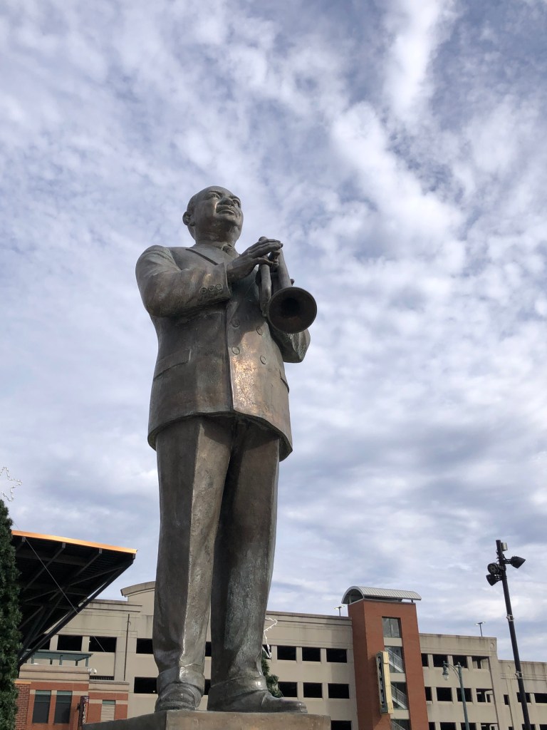 W. C. Handy Park is a special place for me. Handy is often referred to as the Father of the Blues. He is also known for his signature song, “St. Louis Blues.” He was born in Florence, Alabama, and was famous throughout the U.S. and Europe. Later in life, he moved to New York City. He died there in 1958, age 85. He was so popular at that time that more than 25,000 mourners jammed the streets around the church in Harlem that hosted his funeral. He is buried at Woodlawn Cemetery in the Bronx, only about 150 feet from my grandmother’s grave in the Ardovino plots at the cemetery.