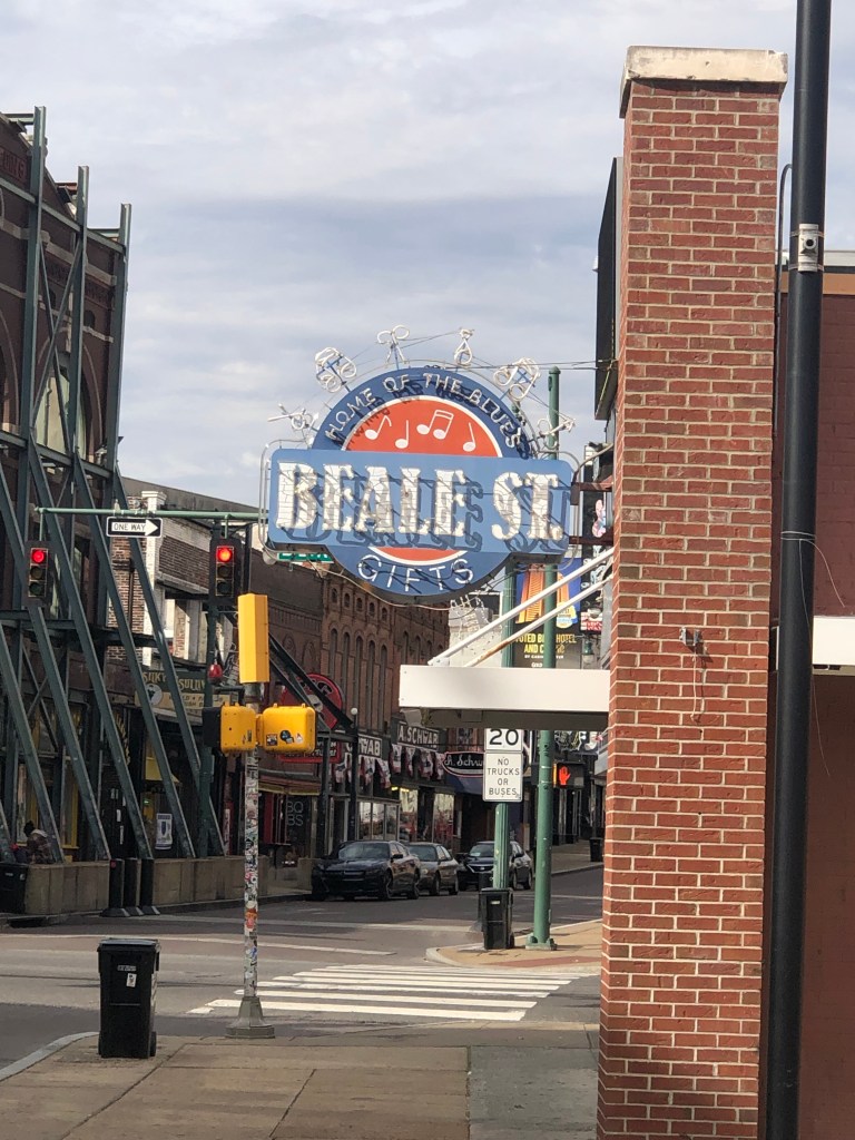 For us, travel to Tennessee usually means a stop in Memphis. Memphis is a special place for us. We met there. My first post was at Memphis State University, now the University of Memphis. We stopped at a collection of our favorite places including Beale St., W. C. Handy Park, Sun Records, and the River Front. I’ve never seen the river this low.