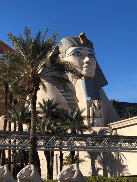 Hotels.com is a great source for booking information, especially in situations like mine. I was able to quickly compare amenities, prices, and other features across a number of hotels in and around Las Vegas. Flash sales also appear. I wanted to stay on the strip at a place that was different. The Luxor offered a king bedroom for $48 per night, a great price anywhere. I had driven by the Luxor before. Who wouldn’t want to stay in a pyramid? It was a great deal. That Sphinx is very cool.