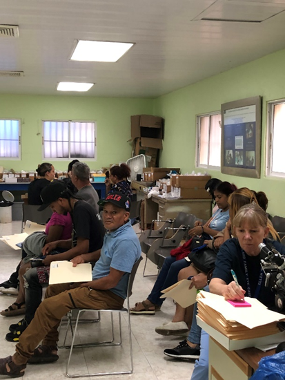 The main clinic is a hopping place. Patients begin to line up at 3:30 am for an 8:00 am start. Upon arrival they receive a number signifying their place in line and then sit around in the chilly night air until the rest of the team arrives. Things get going at 8. Patients are checked-in, and a visit record is initiated. Many patients have been seen by clinic professionals before. The new visit-specific record is added to the old ones. They carry their files with them for the entire visit. Some of the files are nearly one inch thick, reflecting the fact that they are our repeat customers.