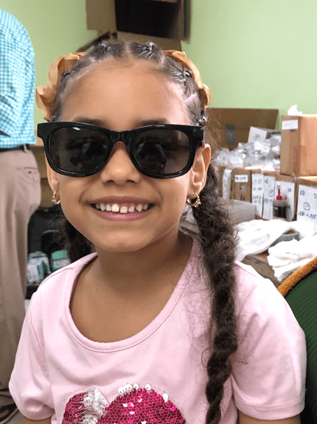The sunglasses stage, which is where I work, is next and a happy place to be. There is a lot of joy and the sense that the process is almost over. It’s where I sometimes have an opportunity to take pictures of children in their new pair of shades. The last stage in the process is with opticians. Data from the examination and visual acuity testing are used to make the best decisions for corrective lenses. Glasses are selected and fitted while music plays in the background. It’s a festive environment and just about all of the patients leave happy and smiling because they can see more clearly.