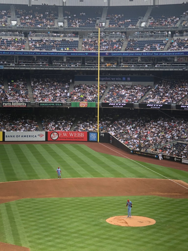 While not planned in advance, we decided to take in a Yankee game on Saturday, the day before the reunion. I always like being in the Bronx, especially at the stadium. I have wonderful memories of my first MLB games, taken to Yankee Stadium I by my uncles Tom and Vinnie and my grandfather George. We didn’t live far from the stadium, just a short drive from our home on 173rd Street (Yankee Stadium is on 161st Street). Regarding Saturday’s game, the Yanks fell behind early. In the bottom of the eighth, a three-run double closed the gap to 6 to 5. Sadly, the Yankees would score no more, going out with a whimper in the bottom of the ninth.