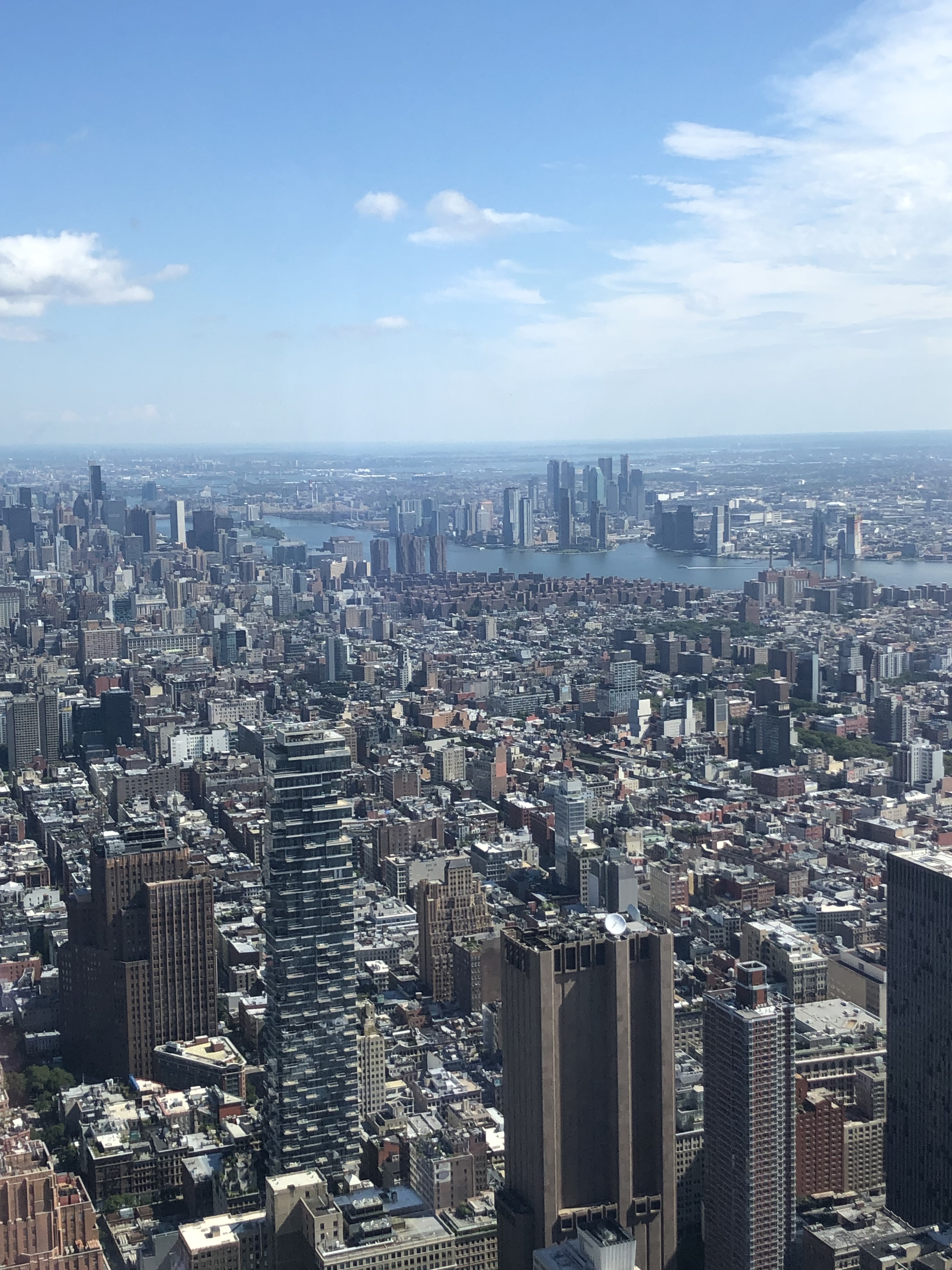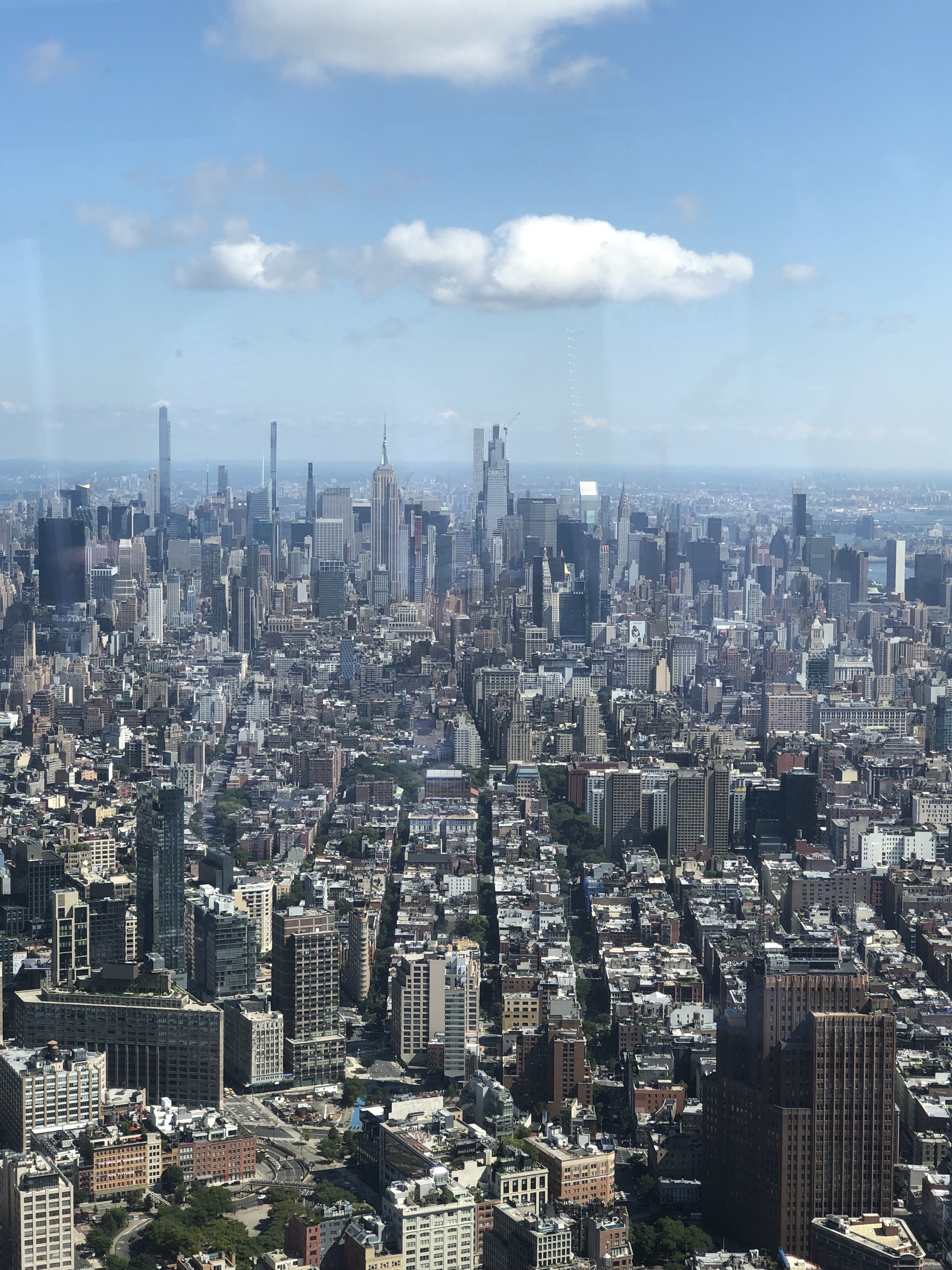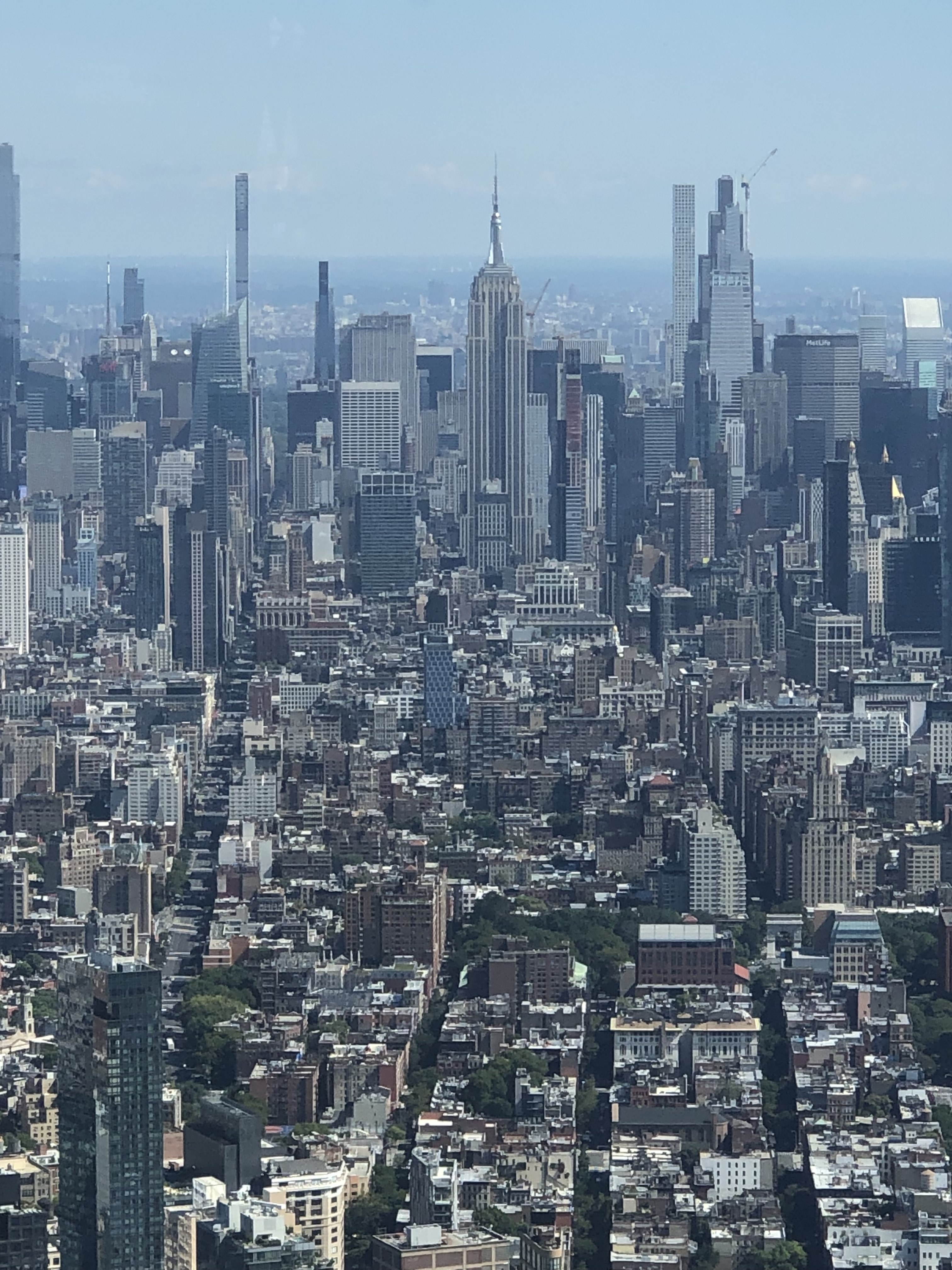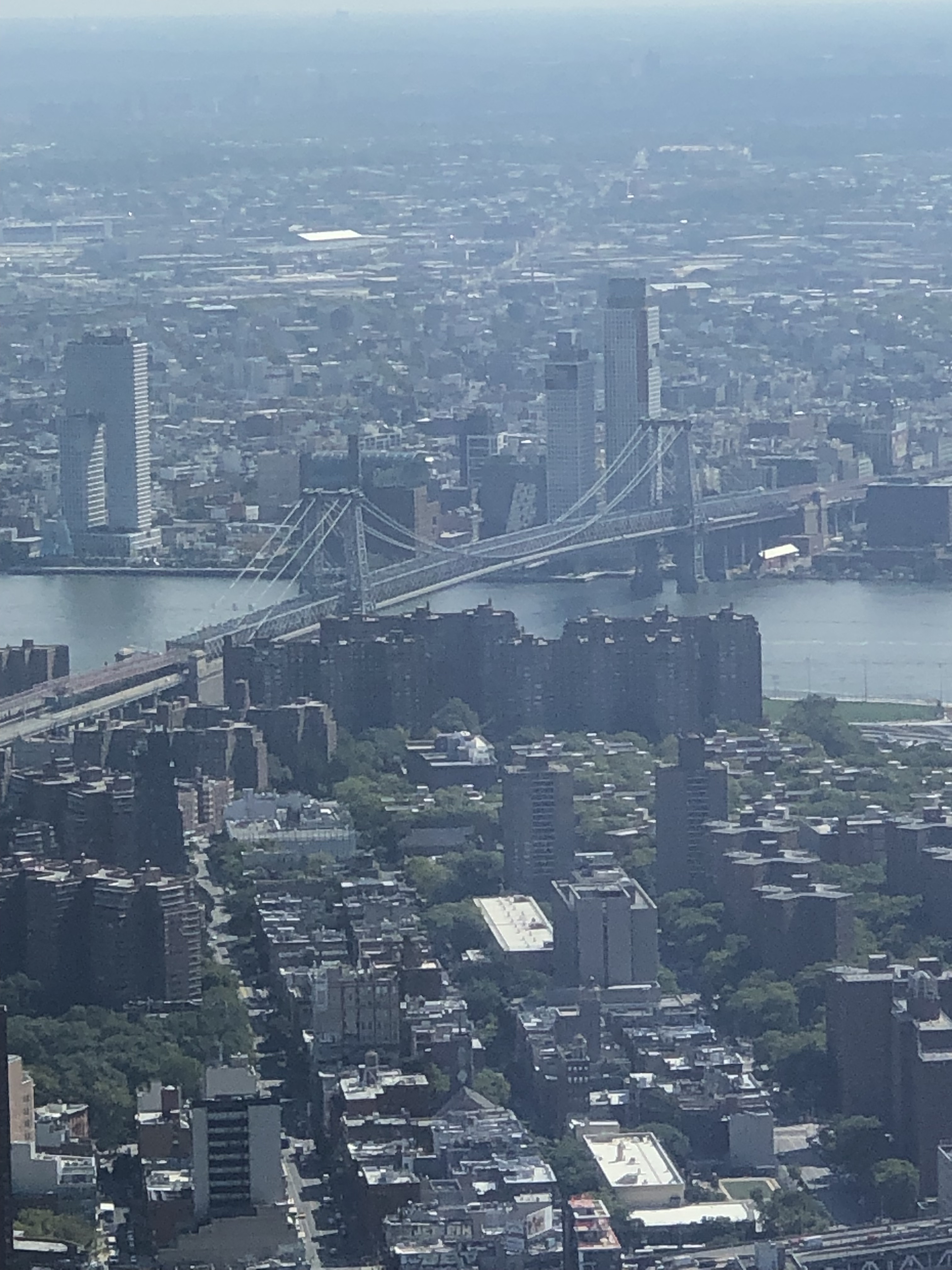 We’ve been to NYC many times since the completion of the World Trade Center (WTC) and the memorials around it. For reasons that I can’t fully explain, I have avoided a trip to this part of Manhattan. Perhaps the scenes from that day or the stories that I have heard since, some from my cousins, have kept me away. Anyway, it was time to go and at Janet’s urging we decided to take the 45-second elevator ride to the observation deck of the WTC. Only there, or any other place with some altitude, can you get the full monty of NYC, its tall buildings, bridges, rivers, parks, and islands.