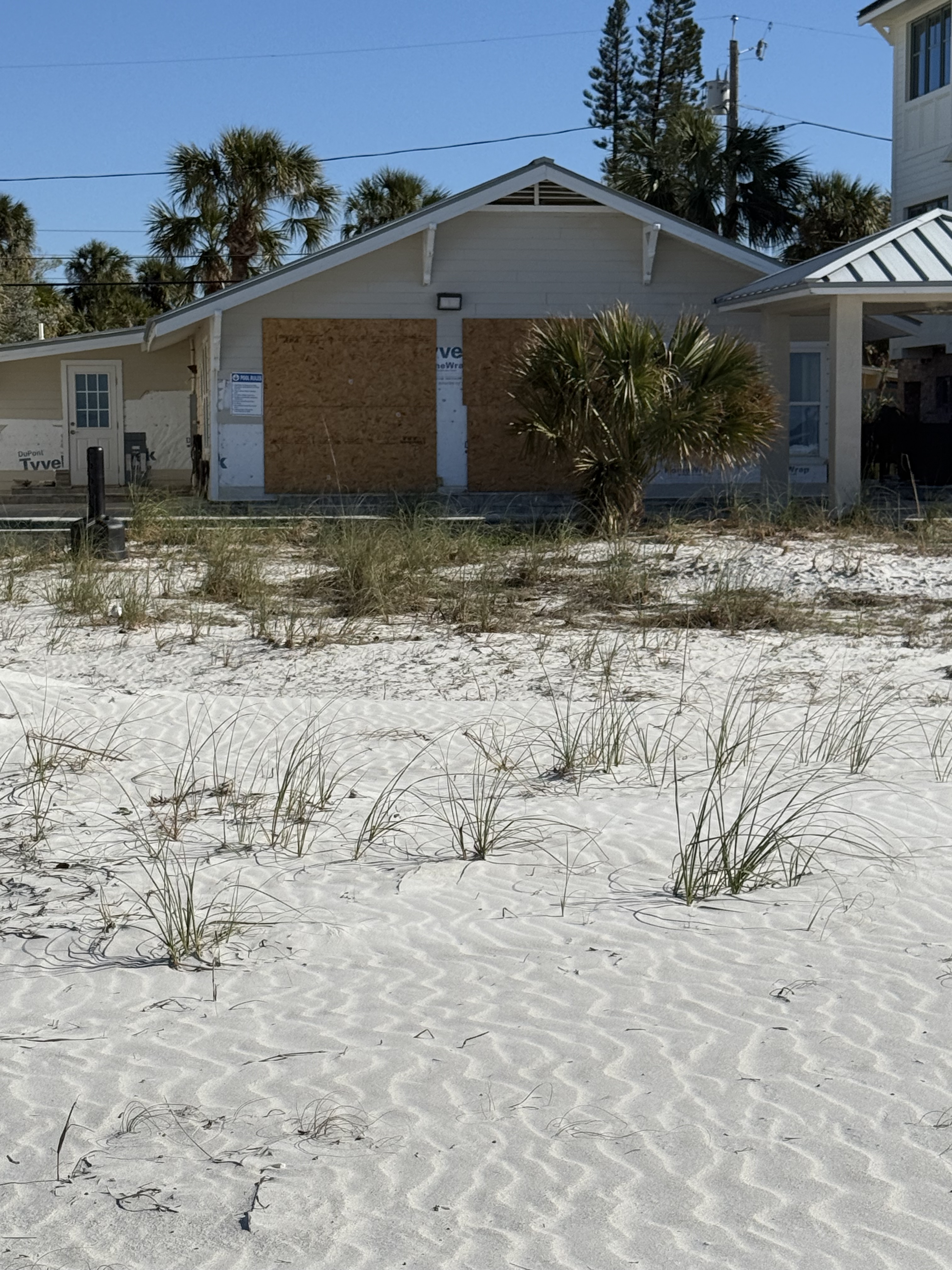 The damage from Hurricane Helene was extensive. A combination of storm surge and relentless wind pounded the island for several hours. Almost everything that wasn’t at least three feet above the ground took water. Mandalay Avenue, the main north-to-south drag had three feet of water, drowning the shops and restaurants that line it. We saw a lot of damage and efforts to repair and restore. Our favorite restaurant, Palm Pavillion, is nowhere close to reopening. Clear Sky, an excellent place for breakfast, is still weeks out before they can welcome back customers. Pier 60 was heavily damaged and still is not safe to traverse. The boat damage was extensive. We observed two sunken sailboats, only their masts could be seen above the water. However, beach residents, business owners, and employees have grit. They are rebuilding. Restaurant workers are slowly coming back. They’ve been here before. They know the drill.