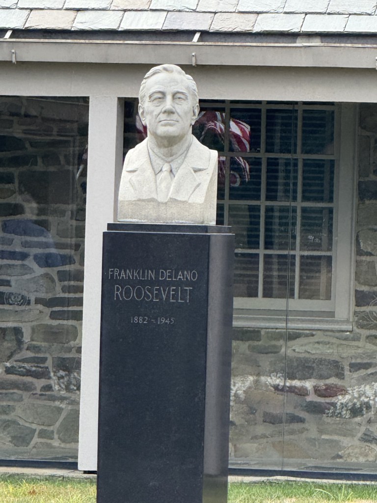 The kids and the other members of our entourage flew back to Omaha on Labor Day—they should have stayed one more day. Janet and I drove into Manhattan, across the Brooklyn Bridge, through Battery Park and north along the Hudson River. We had learned on prior visits that the best time to “see” NYC is on Sunday morning and holidays. The lack of traffic and the overall shortage of human beings make driving not only easy but a real pleasure. While on our drive north we decided to go all the way up through Poughkeepsie to Hyde Park and the FDR presidential library. FDR’s was the second presidential library, Herbert Hoover’s was the first, in our nation’s history. I suggest that you visit. The early presidential libraries, in general, are small scale and can be thoroughly seen in a day or less. FDR donated the land, put up the money to build the structure that houses the museum, and gave many of the artifacts found in the library today.