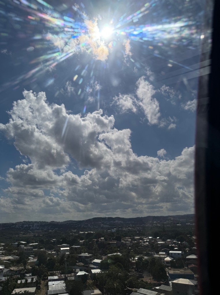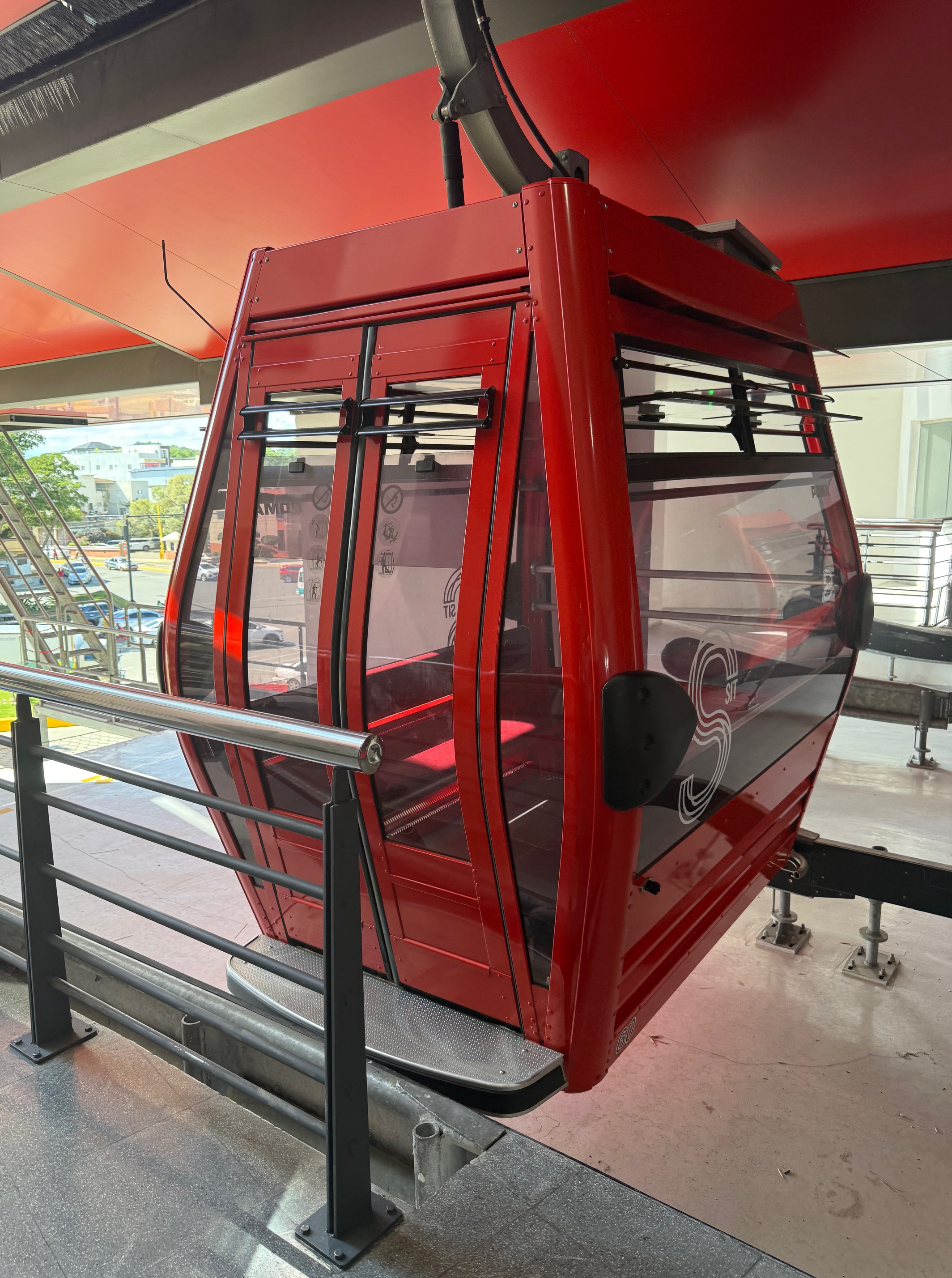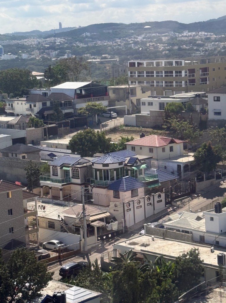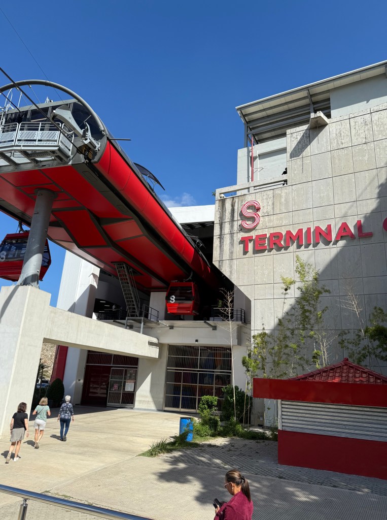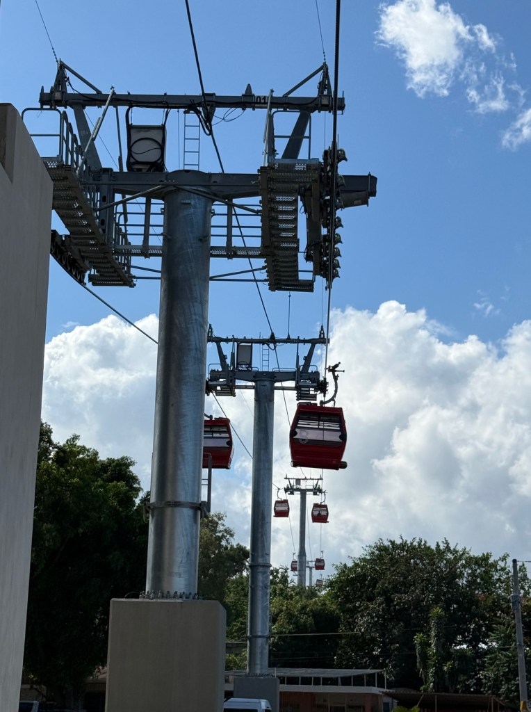 On the last day of our visit, we went out and about to some of the areas of Santiago that we had not seen before. Santiago is a bustling, thriving place, full of commerce, music, and great food. There are several infrastructure projects underway, including an effort to reshape public transportation. A new transportation hub has been built, one designed to bring together buses and a new cable car system. One of the goals of the new system is to reduce traffic congestion. Side streets in the older parts of town are narrow and winding, making even a short trip take far too long. We rode on the new cable car system, from end-to end. It just opened and we were almost alone in our trek. The photos below provide some views from our ride.